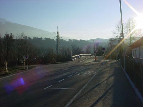 Die neueröffnete "New-Orleans-Brücke" der Linie T mit aus unerfindlichen Gründen geöffneter Schrankenanlage.