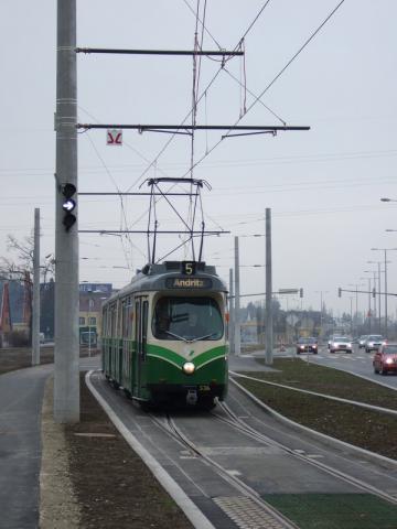 Neubaustrecke bis hin zur Station 'Maut Puntigam' in Hochkette ausgeführt.