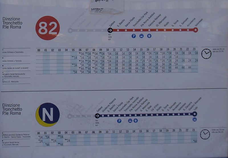 Minuten, es gibt auch einen "Nachtbus", Routentafeln, Liniensignale, also