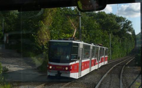 KT8D5RN2P 9090 kurz vor der Haltestelle Krejcarek, aus dem Gegenzug aufgenommen. In diesem Bereich ist die Streckenführung wirklich spektakulär schön!