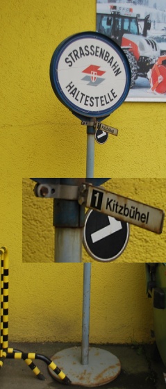 In der Ecke des Betriebsgeländes einer (Eisenwaren ?) Firma in Kitzbühel hab ich unlängst diese Wiener Straßenbahnhaltestelle entdeckt.