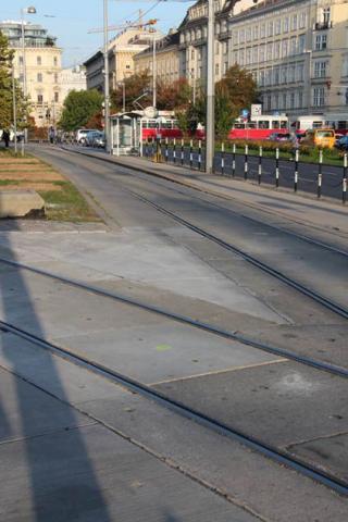 Am Karlsplatz bleibt die Bim nun weiter vorne stehen, den Grund dafür kenn'