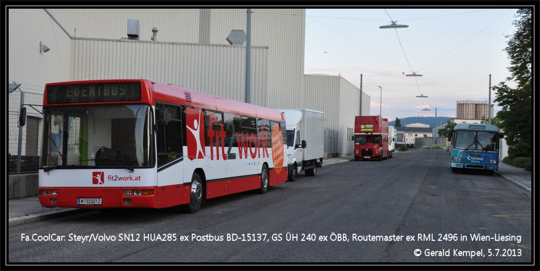 Sowie ein Steyr/Volvo SN 12 HUA 285, der eindeutig als ehemaliger Grazer Postbus BD-15137 identifiziert