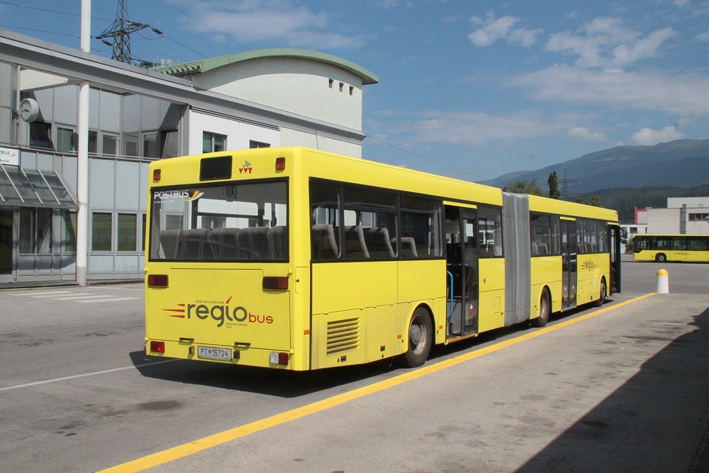 PT 15724, ein im Jahr 2001 gebraucht beschaffter, weißer O405G wurde komplett neu in die Regiobus Farben umlackiert