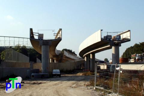 Doaustadtbrücke, in der Mitte die abwärts gehende Trasse