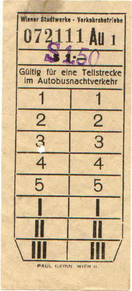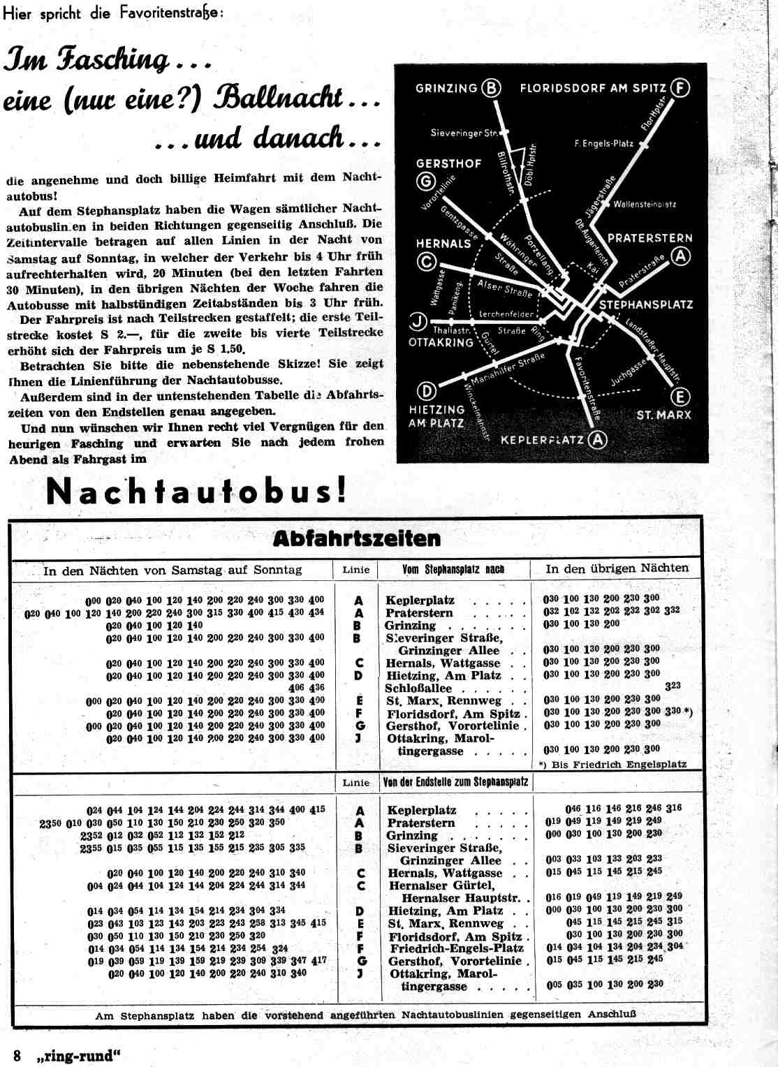 Hier ein Übersichtsplan des Autobusnachtverkehrs aus der Zeitschrift Ring-Rund vom 1. Februar 1957. Im zweiten Bild ein Fahrschein des Autobusnachtverkehrs.