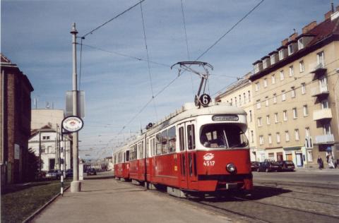 E1 4517 + c3 1197, Linie 6, am 4.April 2002 vor dem