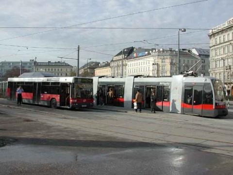 Bild 2: Karlsplatz am 7.2.2001; Stelldichein ULF 7 mit NL-Bus #8839