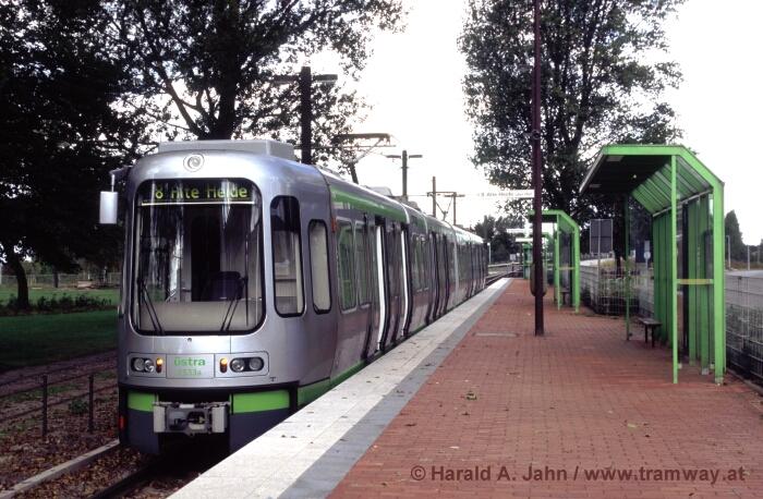 fahren sie mit normaler Straßenbahntrassierung im Straßenbereich. Hannover