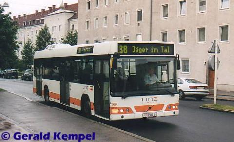 Niederflurbusse in ihrem Bestand. Einer davon ist Bus Nr. 185,