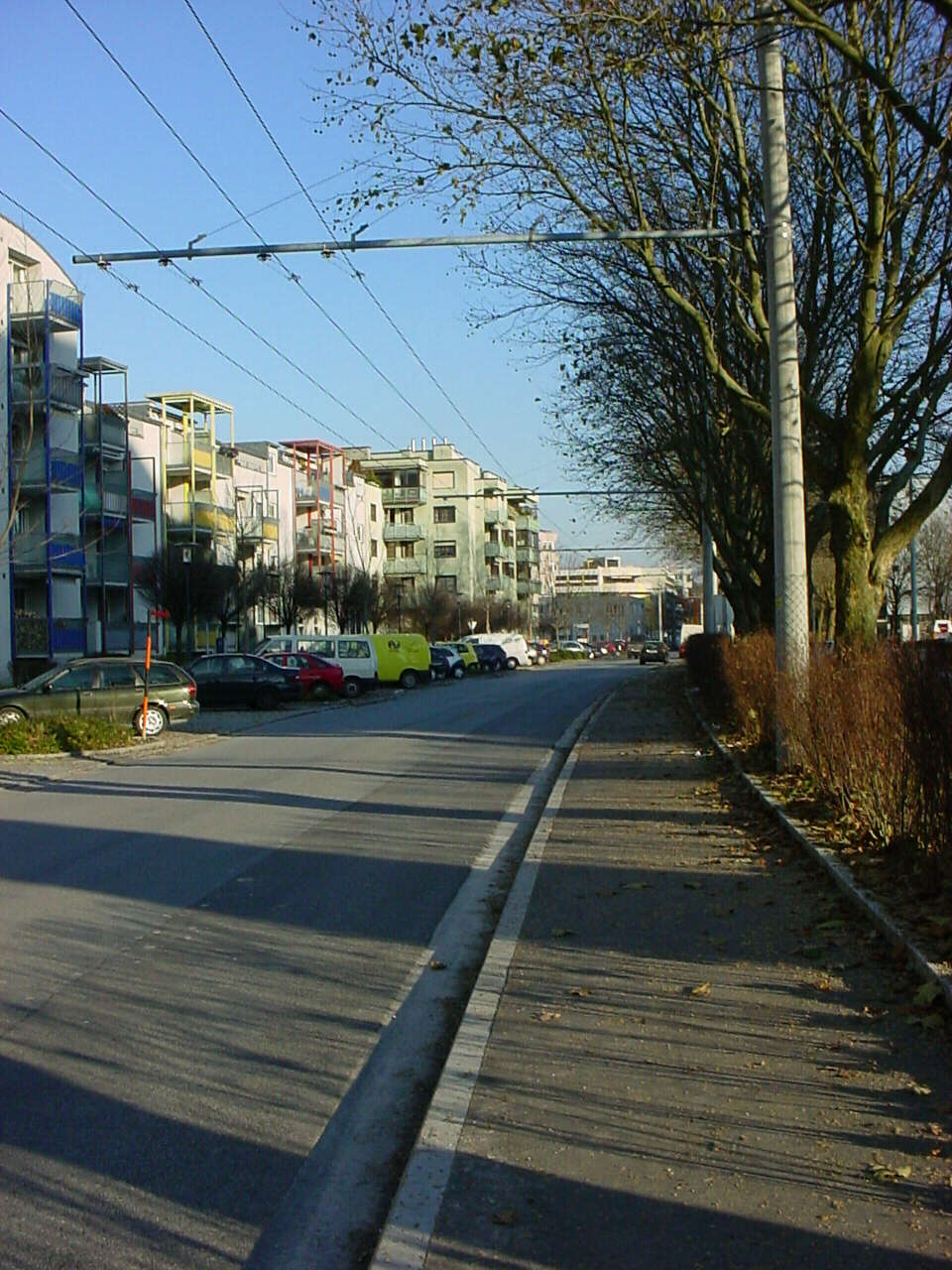 Der Abschnitt Technikerstraße der kürzlich eröffneten "Westspange" der Linie O gegen Osten.