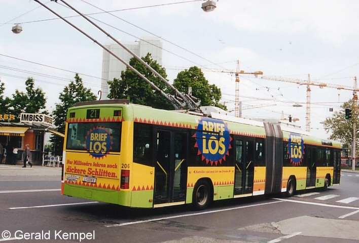 Als einziger O-Bus ist der Volvo Niederflurgelenkbus Nr. 206