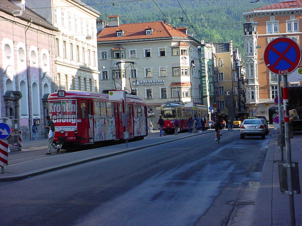 SL 3 und SL STB am Nordende der M.-Theresien-Straße, normalerweise nur von der SL 3 befahren. Dort, wo der Achtachser im Bild gerade Richtung Osten abbiegt, wurde heute auch bereits mit den Bauarbeiten für den Gleisbogen Richtung Westen begonnen.