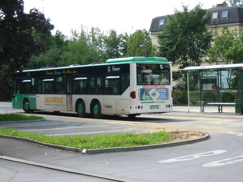 zuerst Bus #15 in der Schleife, dahinter sieht man, wie leicht die Busse