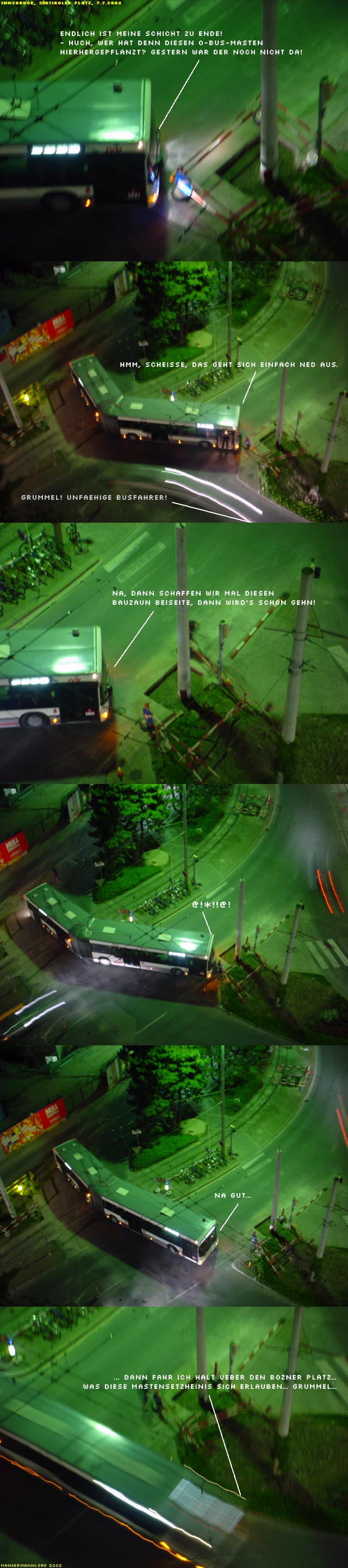 handelt sich um eine nachts aufgenommene "Fotostory" in sechs Bildern.
