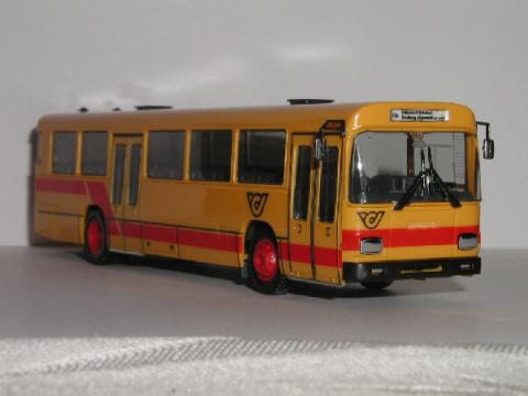 Bild 2 zeigt das Modell in Bundesbuslackierung mit ÖBB-Pflatsch, betafelt