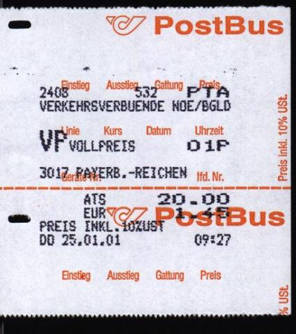 Beim PostBus wird nun ein neues Fahrscheinpapier verwendet, welches das PostBus-Logo ziert.