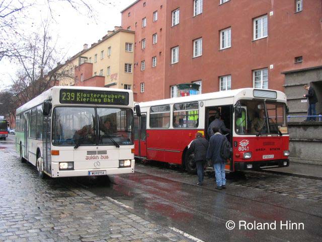 Bei der Abfahrt in Heiligenstadt zusammen mit Zuklin-Bus Nr. 11,