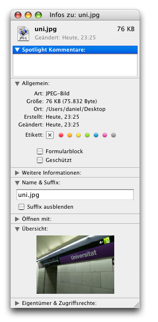 > Mein Mac beispielsweise zeigt das Bild im Info-Fenster an, siehe Anhang.