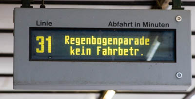 Stimmt. Langsam wird es ja richtig etwas. Beispiel Regenbogenparade am
