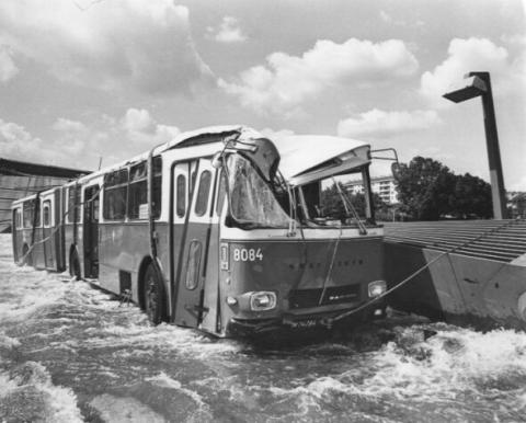 zweite Bild zeigt aus etwas ungewohnter Perspektive einen Bus dessen genaue
