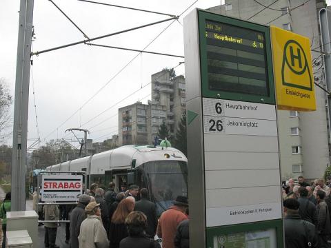 1. Die feierliche Eröffnung mit Prominenz und den meisten Personen (zum Zeitpunkt des Fotos waren die meisten schon auf dem Weg zum Festzelt) fand bei der Haltestelle Eisteichgasse statt. Dort standen 2 Cityrunner bereit, dann wurde ein Band durchschnitten und ...