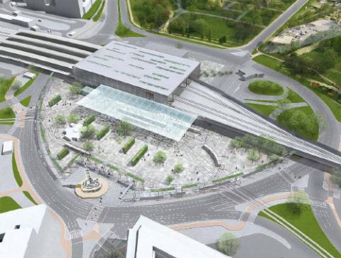 >> die bestehenden Gleise in die Unterführung. + ... Weiche