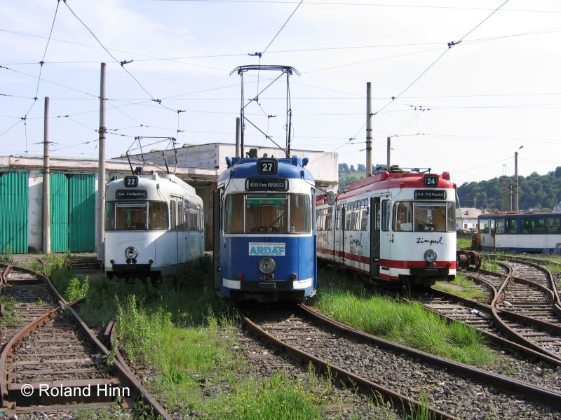 Foto 4 zeigt eine kleine Fahrzeugparade: Wagen 22, 24 und 27 am hinteren