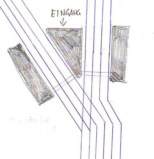 nur durch Überqueren der Gleise erreichen. Um die Situation noch
