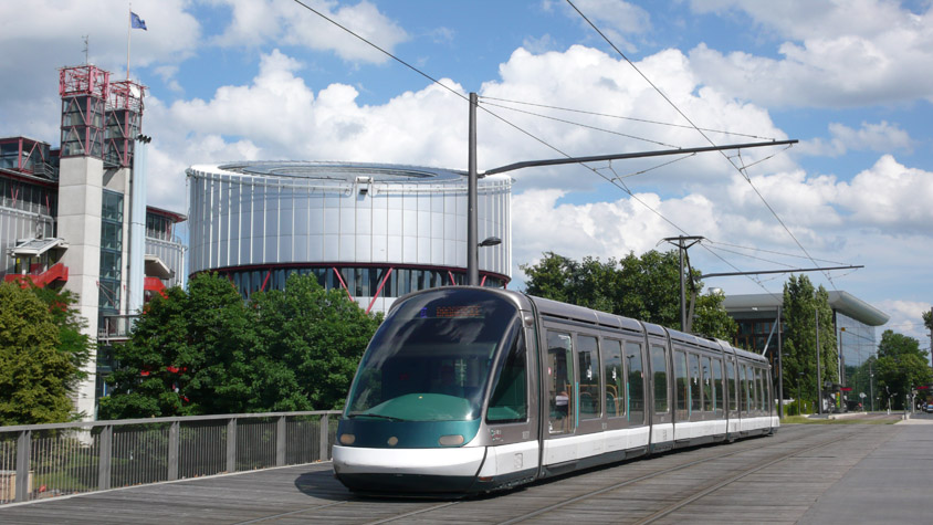1031 mit den Gebäuden des Europäischen Gerichtshofs für Menschenrechte im Hintergrund