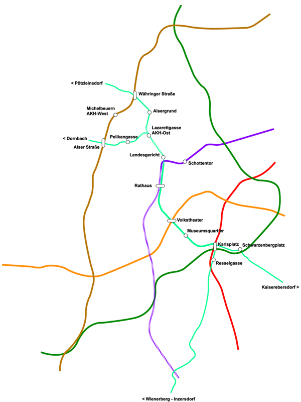 modernen Stadtbahn bringen und zwei nord/nordwestliche Äste nach Dornbach