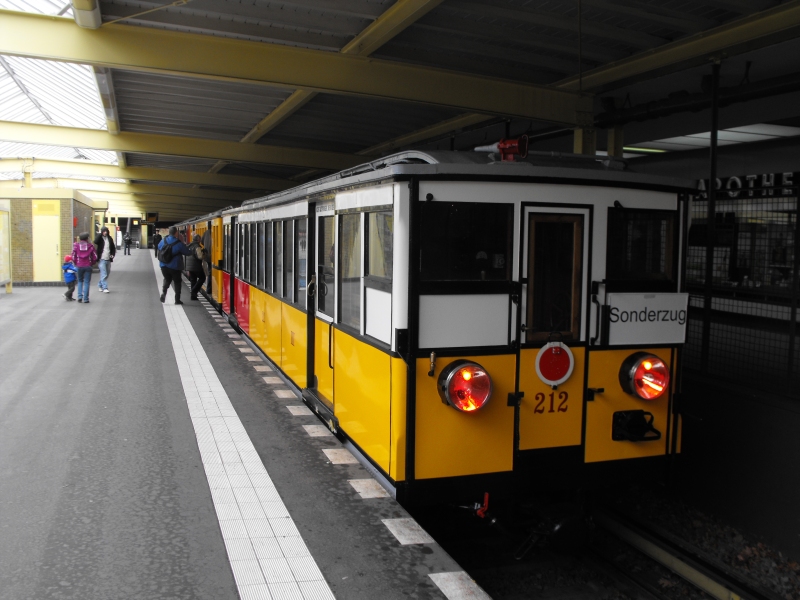 fahrfähige Personenwagen der Berliner U-Bahn, der Wagen 212 am Schluss des