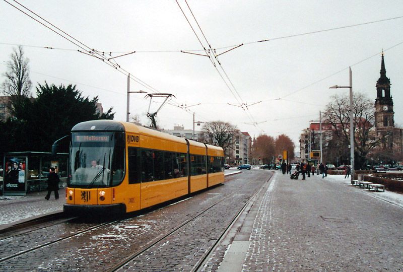 Hintergrund für die Türseitenaufnahme des Wagen 2611. Am Albertplatz