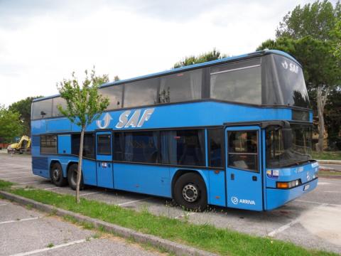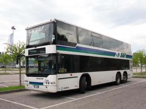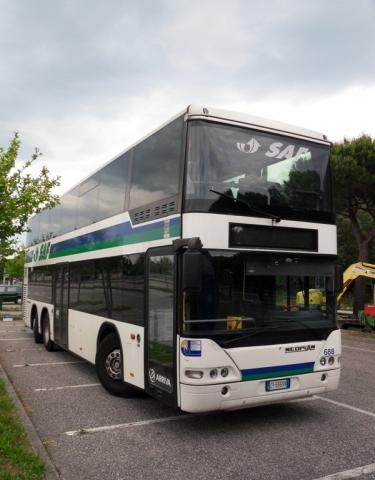Neoplan im Oberdeck zurück nach Lignano am Busabstellplatz.