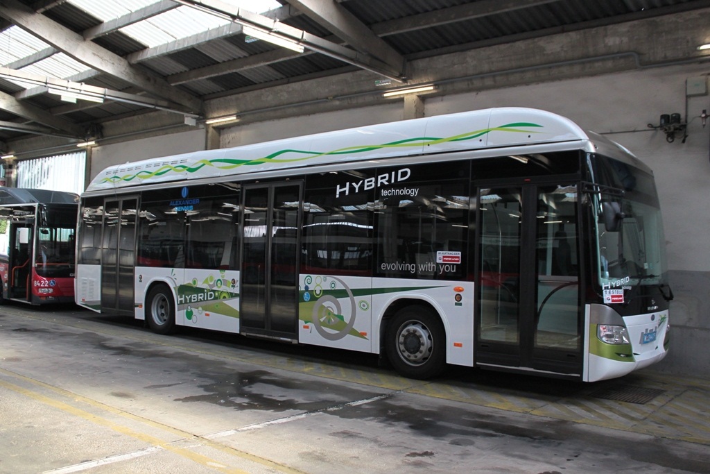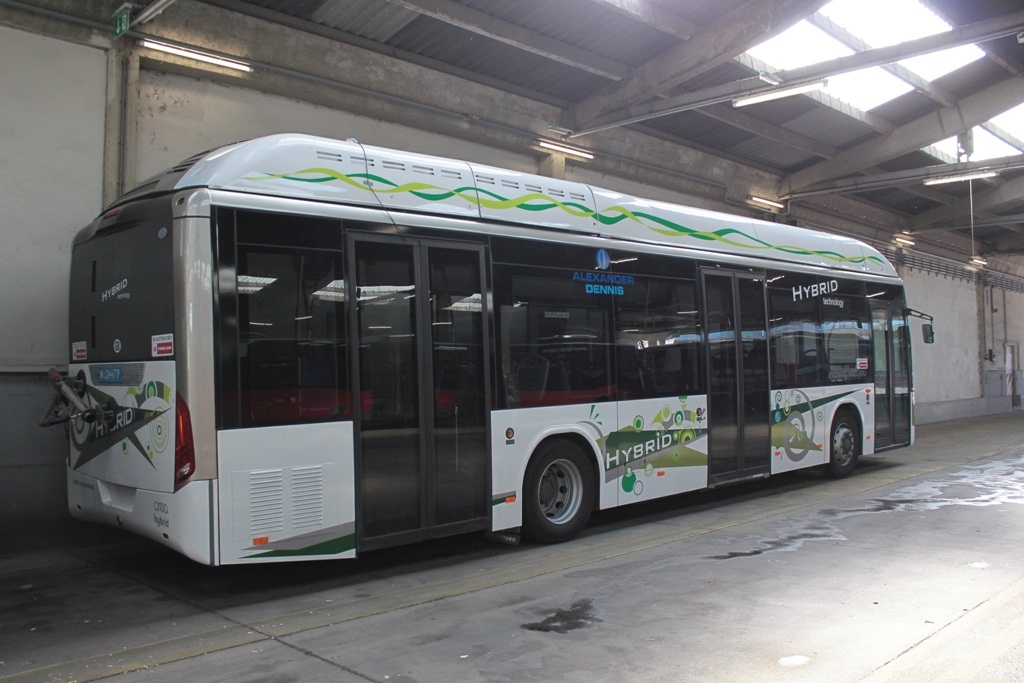 Ein Testbus steht noch in der Garage Spetterbrücke. Es handelt sich um einen TATA HISPANO Hybrid. (Ein genaue Typenbezeichnung fand ich bei der Besichtigung nicht)