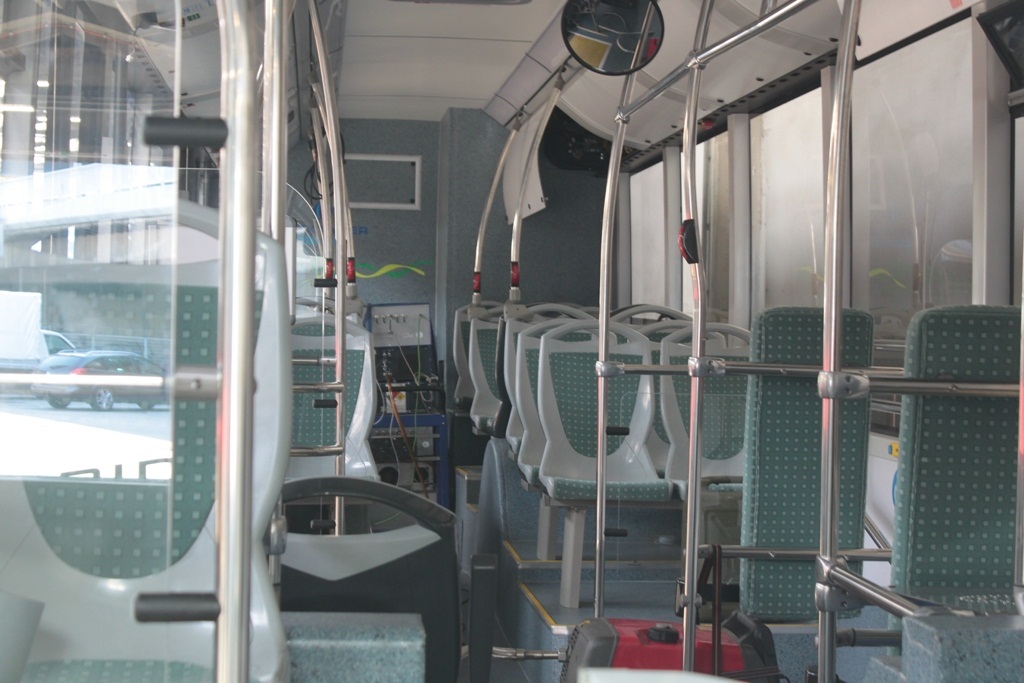 Abgasmessrohr, jedoch schon Testbusaufkleber. Allzubald wird er daher
