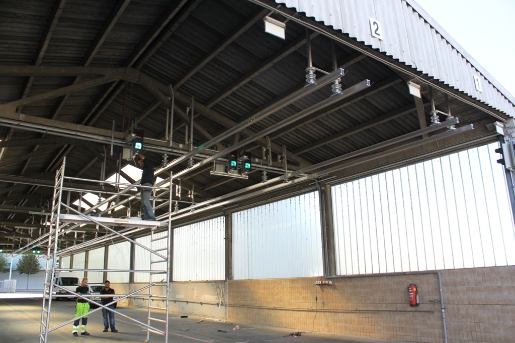 16 Uhr nicht in der Garage SPT, jedoch werden gerade die Aufladeoberleitungen in den ersten 2 Fahrspuren der Halle Montiert, wo bislang immer die Kutsenits parkten.