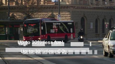 In einem Vorführ-Trailer von MAN für den Lion´s City Hybrid kommen