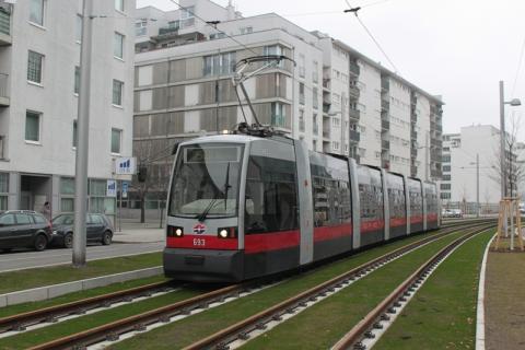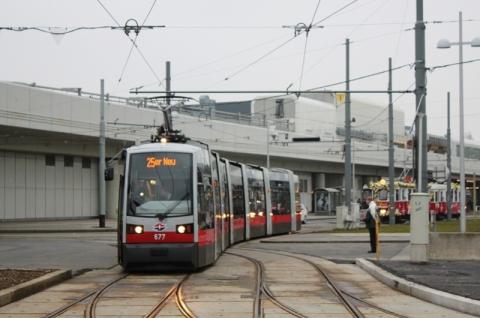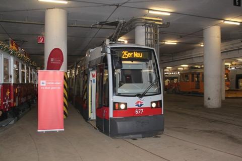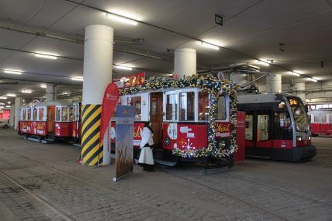 aus dem Bahnhof Kagran, gefolgt von der Ströck Weihnachtsbim.