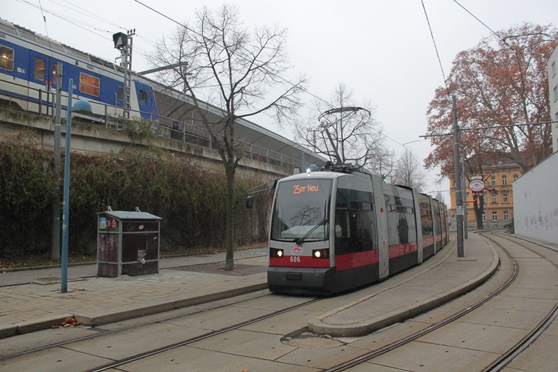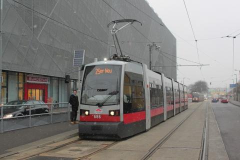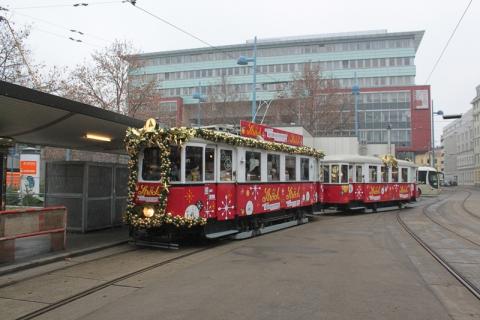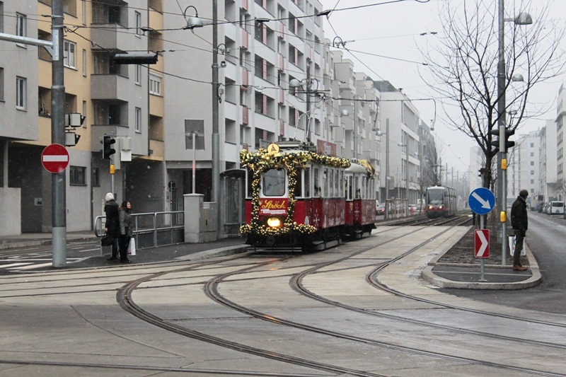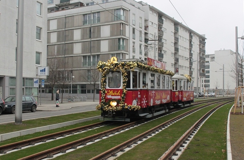 aus dem Bahnhof Kagran, gefolgt von der Ströck Weihnachtsbim.