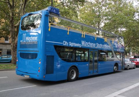 auch MAN UNVI unterwegs, mit offenem Verdeck. Trotz Oberleitung von Straßenbahnen (welche hoch genug hängen)