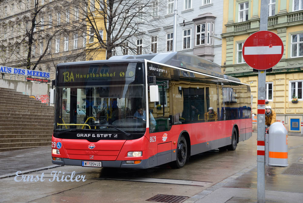 Bild 1 zeigt den NL 8669 bei der Linken Wienzeile.