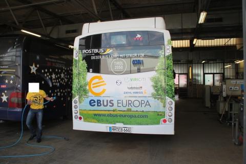 Der Bus ist ein vollelektrischer E-Bus der Firma SOLBUS und wird als ViriCiti bezeichnet.