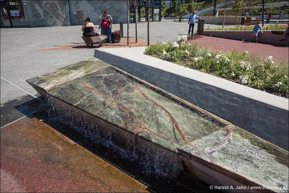 schon früher Treffpunkt war; ein Bodenbrunnen, der Kinder begeistert; eine
