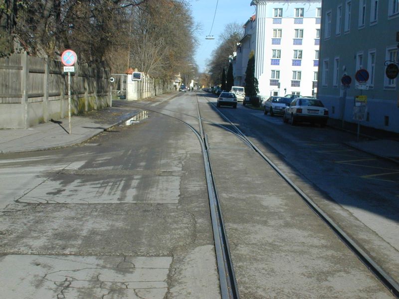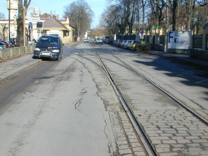 Die Straße, wo die letzten Gleise liegen, ist die Herzogenburger Straße vor