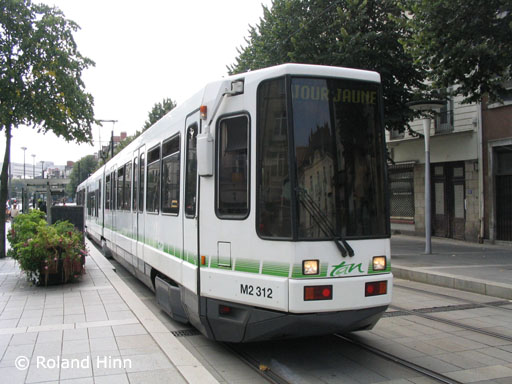 Bild 1 zeigt den Ursprungstriebwagen 312 in der Haltestelle Place du Cirque,