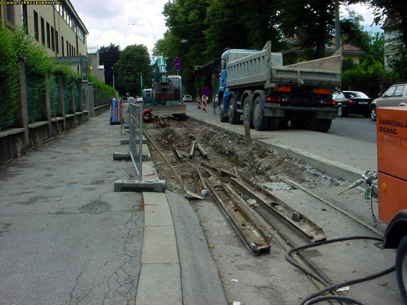 Salurner Straße, das rechte ist ein neues Gleis für die künftige
