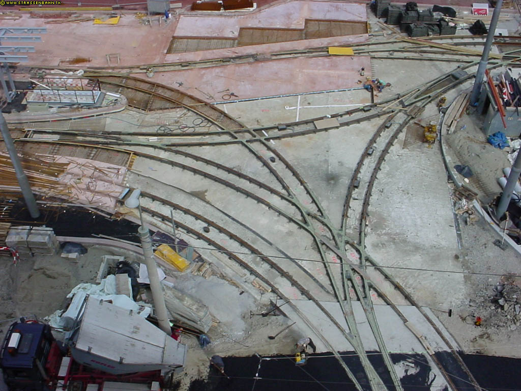 Der Gleisknoten in Platzmitte von oben. Links ist der Nordteil des