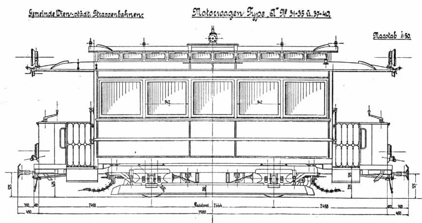 Die Typenskizze zeigt die Triebwagen der Nachbauserie 31-40, die sich aber