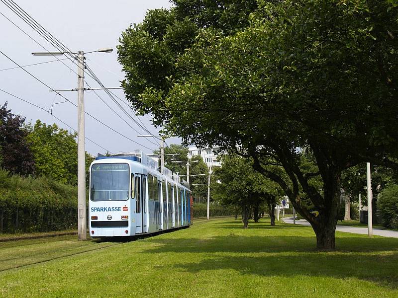 nur auch hier das schöne Rasengleis auf, auf dem die Züge fast lautlos